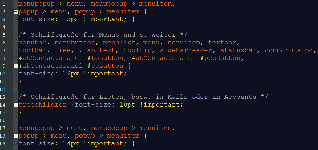 /* Schriftgröße für Listen, bspw. in Mails oder in Accounts */