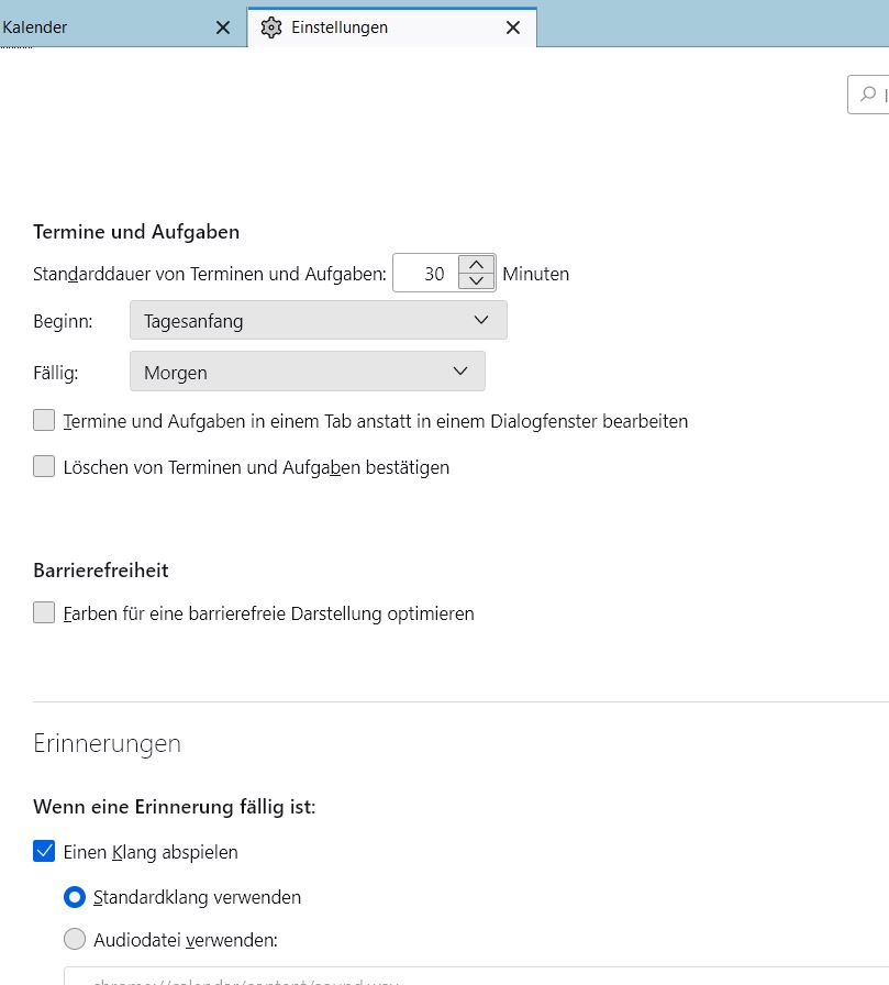 Das war bei mir nicht vorhanden (Bild). Ich hab es aber jetzt gefunden. Ist ein eigener Menüunkt "Termine und Aufgaben" - ganz unten. Danke schön!