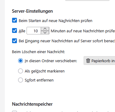 ich nutze Thunderbird mit vier verschiedenen IMAP E-Mail-Konten (auf insgesamt 3 PCs immer mit den gleichen Einstellungen parallel)