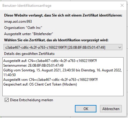 Dann werde ich wohl weiter das Zertifikat bestätigen müssen. Die Mails (zumindest die eingehenden) will ich nicht ungeprüft lassen.