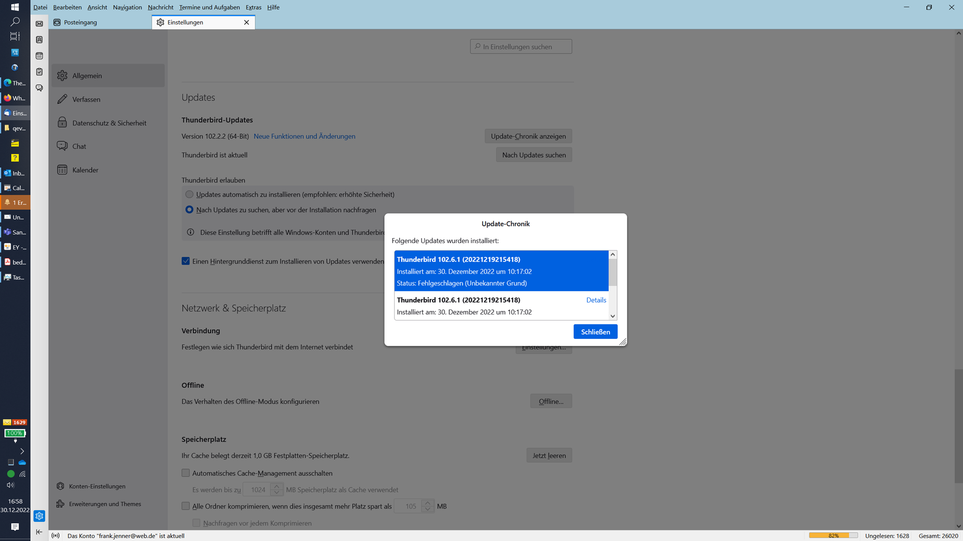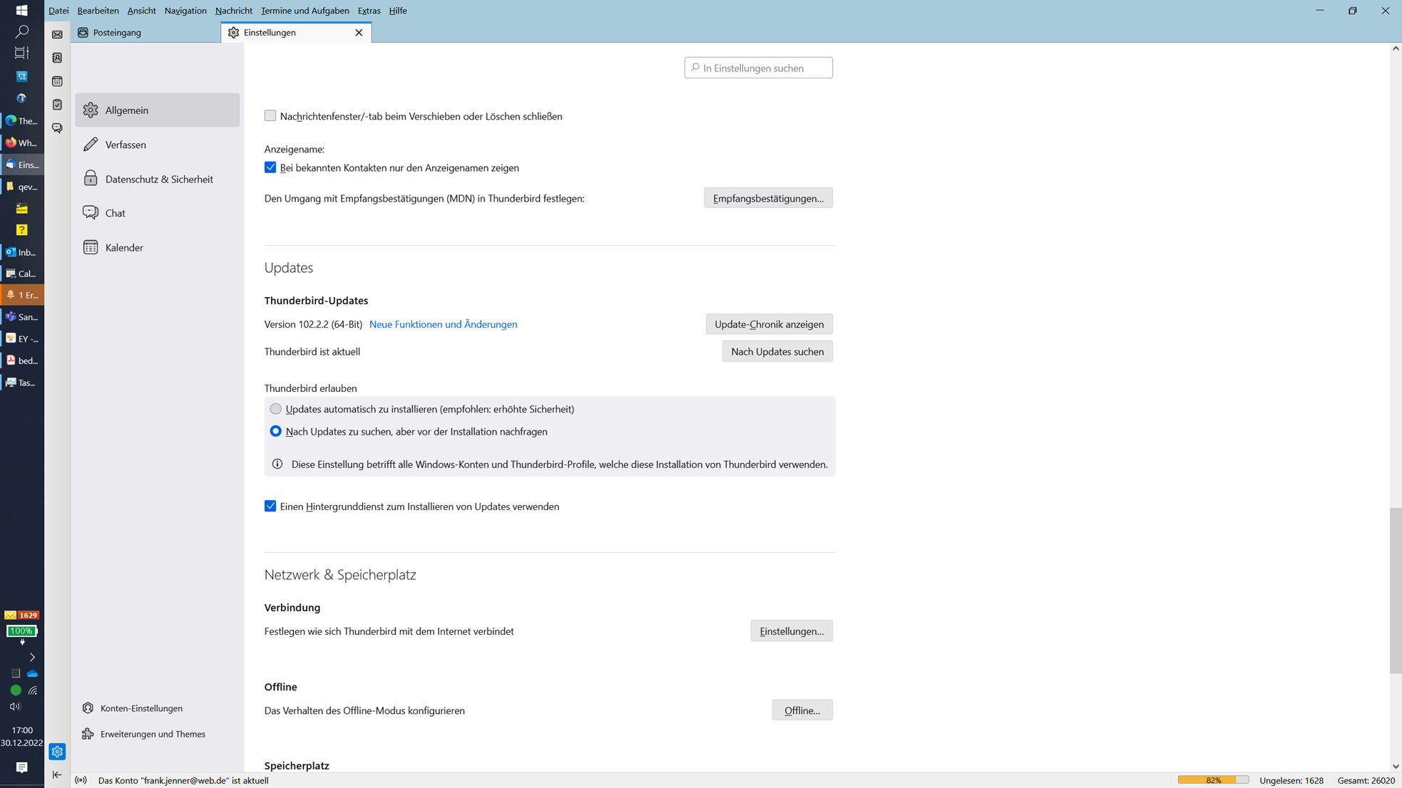 • Thunderbird-Version (konkrete Versionsnummer): 91.1.2 (64-Bit)