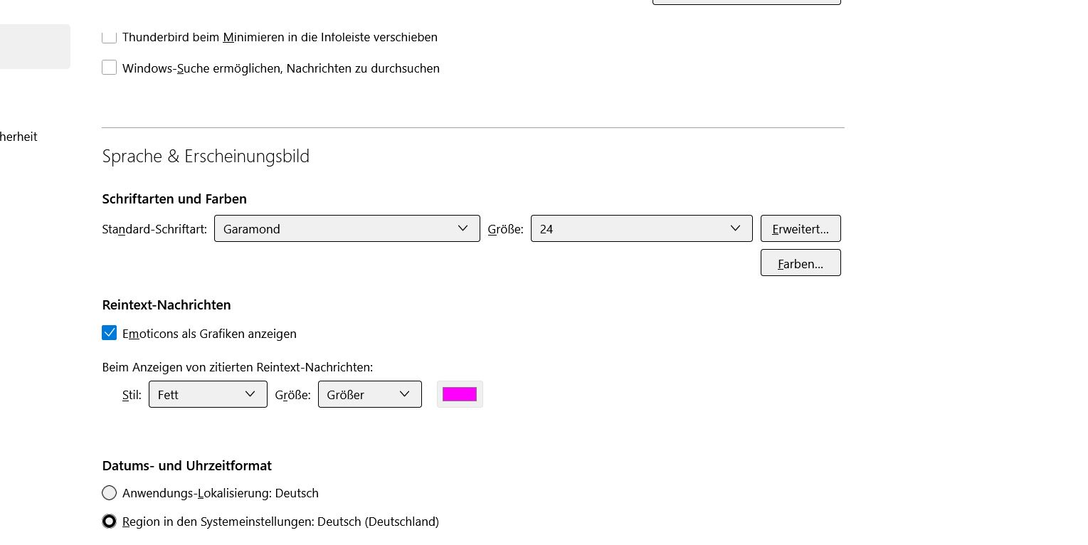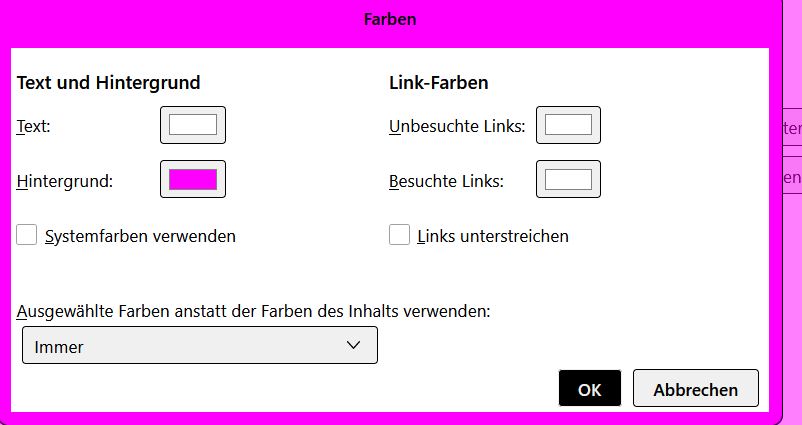 Geh ich auf Systemfarben, werden die Einstellungen schwarz; die Mails aber auch! Was tun, damit NUR die Einstellungen ne andere Farbe bekommen?