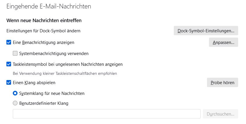 bei mir wird ein Sound bei Eingang neuer Mail ausgegeben.