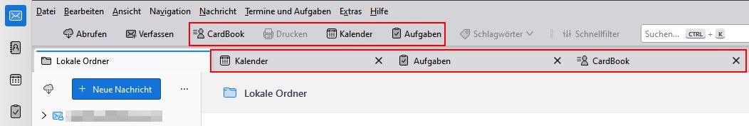 Tabs: Kalender, Aufgaben, CardBook