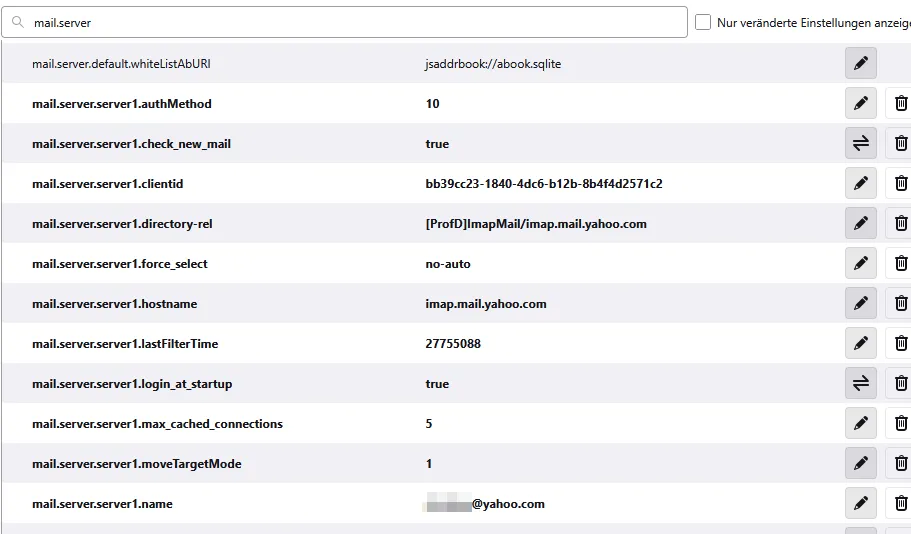 Also wäre server1 bei mir mein Yahoo Konto.... so suche ich weiter bis ich das richtige gefunden habe. (TB speichert hier übrigens jede Menge Müll aus der Vergangenheit.