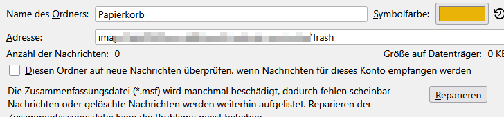 Prüfe ob das wieder funktioniert und die Filter auf die Unterordner wirken und dann mal Rechtsklick auf den Papierkorb, Eigenschaften und den Haken da raus (diesen Ordner auf neue Nachrichten prüfen....)