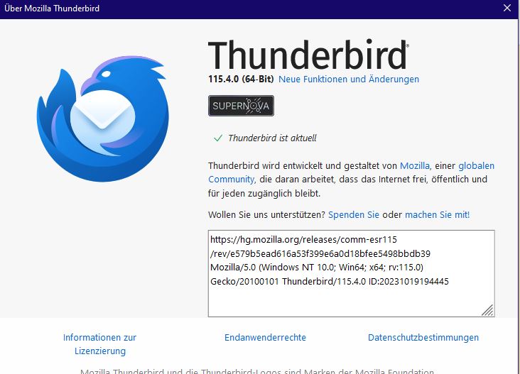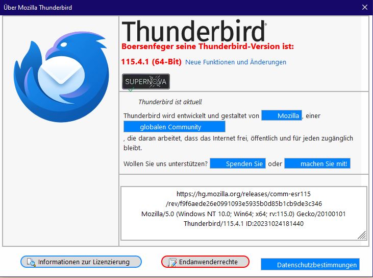 content: 'Boersenfeger seine Thunderbird-Version ist:';