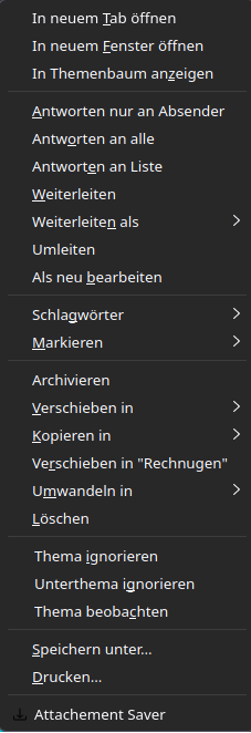 Und jetzt kommt Thunderbird.... Rechtsklick auf eine Mail gibt mir: