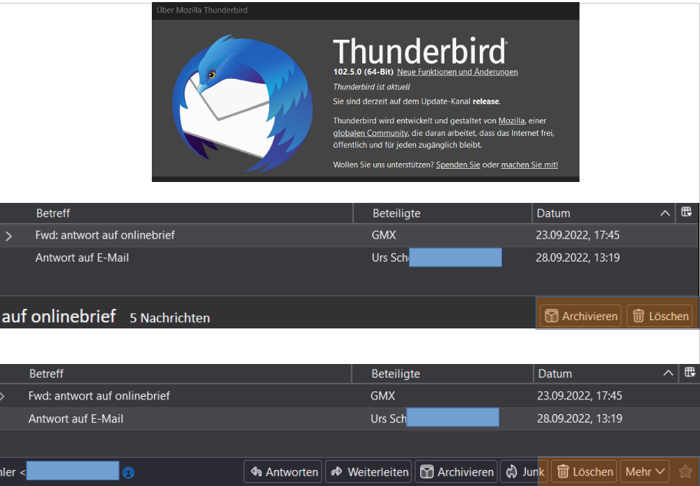 Das führ eben dazu, dass wenn du mehrere unterschiedliche Mali empfangen hast, nicht einfach die Maus stehen lassen und mittels "Ab" und "Klick" löschen kannst, sondern Du je nach dem Typ einmal "Archivierst" und hernach wieder "Löschst".