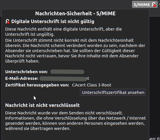 Ich habe das Problem, dass Thunderbird alte Zertifikate nicht löscht und darum neue nicht in den Nachrichten auswählt, weil eben neben den neuen, gültigen auch noch die alten, ungültigen enthalten sind.