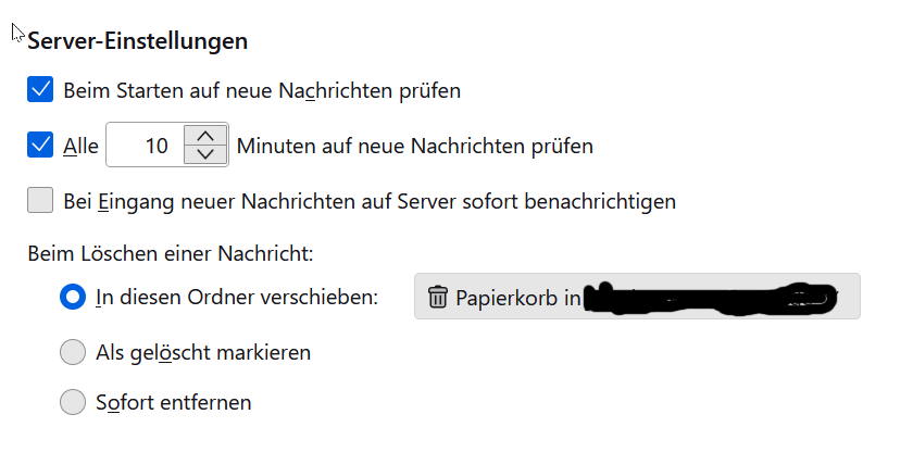 ich verwende Thunderbird 102.6.1, Windows 11, und habe zwei Postfächer auf Thunderbird zu laufen. In einem davon, nennen wir es Konto 1, landen die gelöschten E-Mails nicht im Papierkorb, obwohl die Konteneinstellung dementsprechend ausgewählt ist. Beim anderen, Konto 2, funktioniert das wie gewünscht. Beide Konten sind IMAP-Konten. Konto 1 ruft von Alfahosting ab, Konto 2 von GMX.