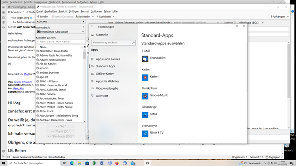, dass kein mail-Programm zugeordnet sei. Die dort gewünschte Aktion bezüglich mail-Programm Zuordnung wurde ausgeführt (siehe u.a. screenshot). Trotzdem funktioniert das Versenden nicht. Hier die Desktop Meldung: