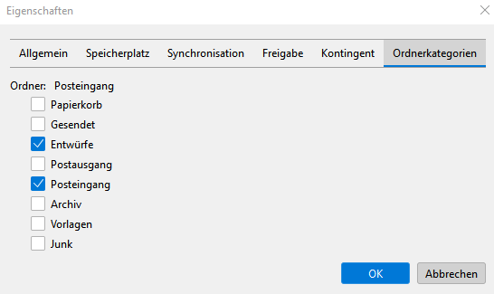 Danke, @Bastler, das war hilfreich. Die 'fehlenden' Ordner sind wieder sichtbar. - Ganz einfach deshalb, weil nach diesen Einstellungen alle Ordner neu eingelesen wurden. Ich dachte, das Einlesen der Ordner könnte ich an anderer Stelle erzwingen. Die eigenen Ordner sind nicht mehr unter dem Posteingang. Es fehlten auch einige Ordner des Providers und von Plugins.