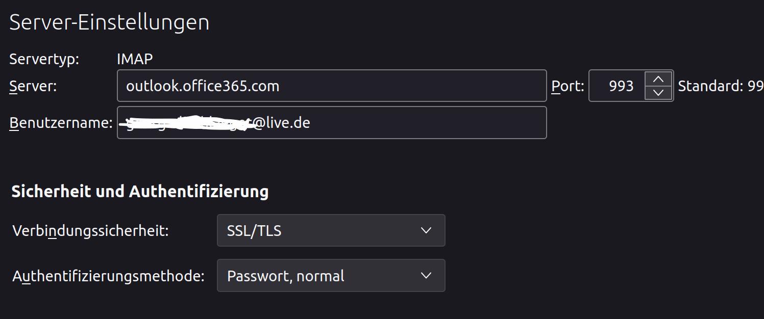 Änderung des Ports brachte auch nichts. Vom Handy mit Outlook App geht es sofot, in Thunderbird geht es nicht.