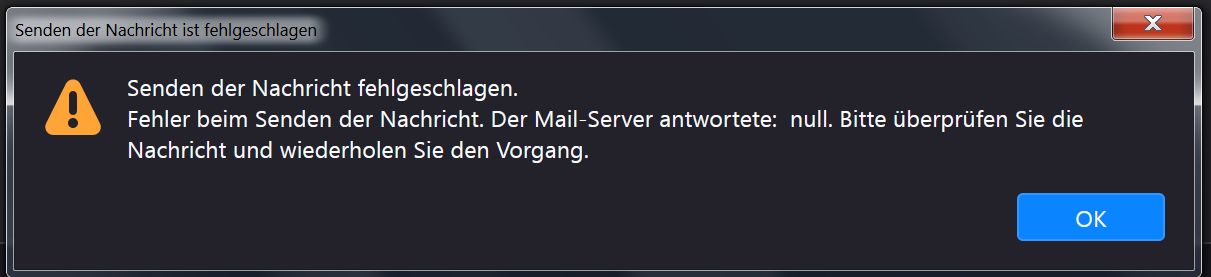 von Zoho bislang nichts gehört und auch das Leeren der Posteingangsordner beim Empfänger hat (wie schon richtig vermutet) nichts gebracht. Die Meldung tritt weiter sporadisch auf. Weiß vielleicht jemand was "Mail-Server antwortet: null" bedeuten könnte? Viele Grüße, Andreas.