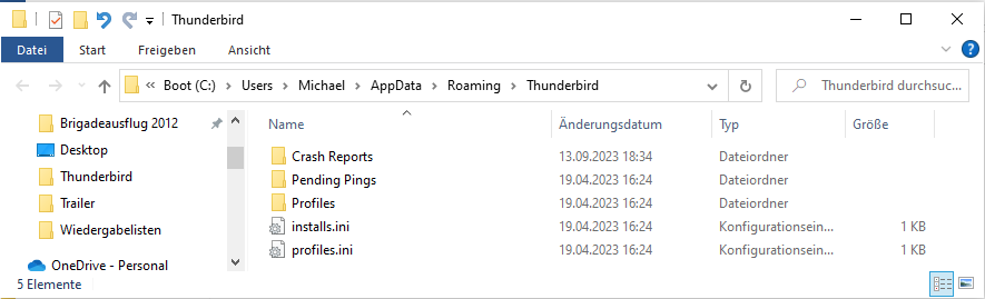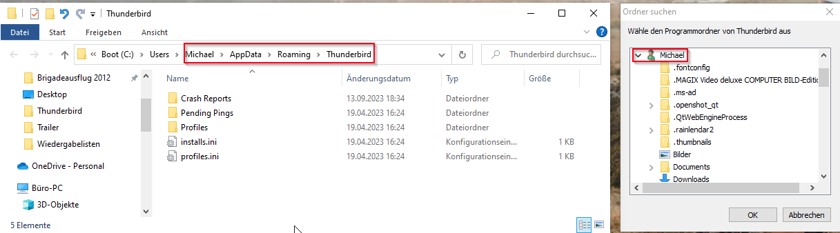 Das wäre dann der Thunderbird Ordner von meinem "Hauptrechner", welchen ich dann bei Bedarf auf menen wenig genutzten Laptop übertragen könnte.