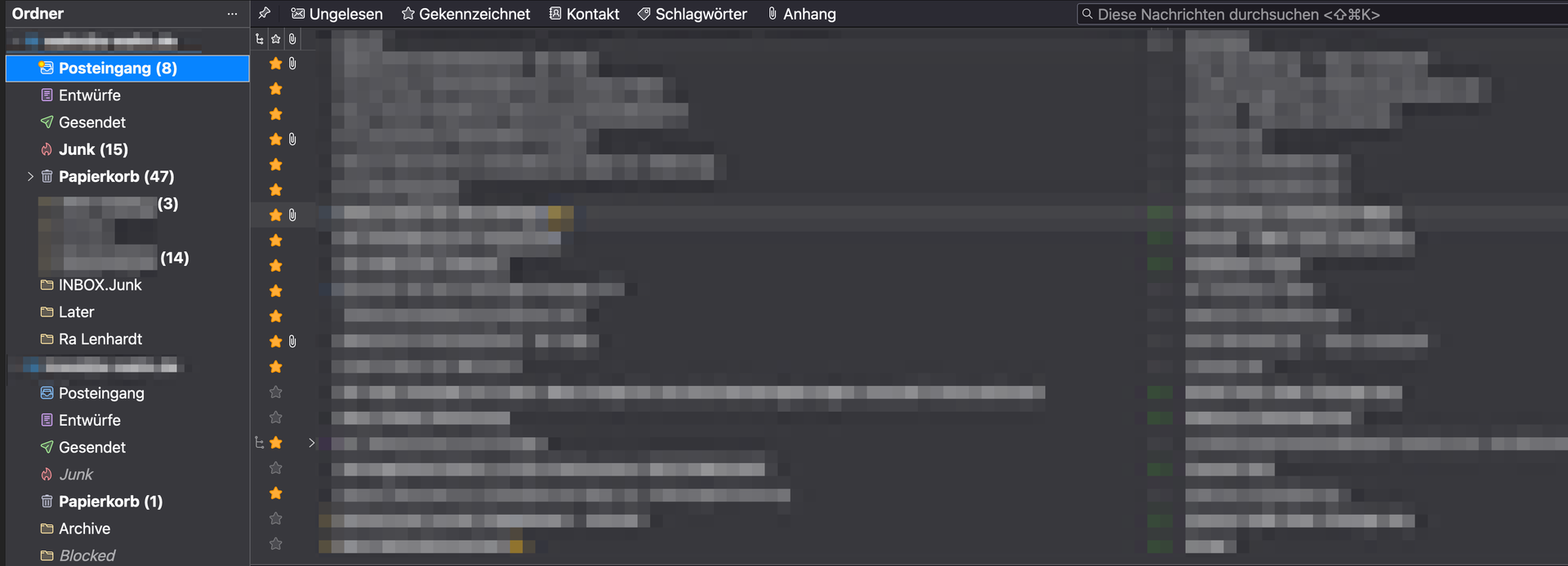 Ich weiß nicht wie ich meine Frage besser formulieren soll, aber folgendes Verhalten verstehe ich nicht. Alle Mails, welche Ihr in dem Screenshot seht habe ich gelesen. Trotzdem steht im Posteingang immer noch eine Zahl hinter "Posteingang".