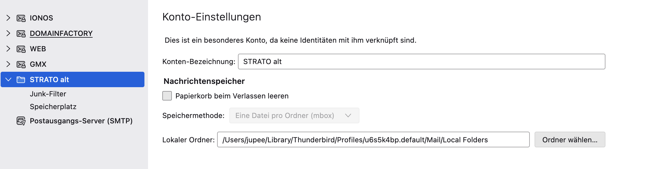Wenn ich das also richtig verstanden habe, handelt es sich bei STRATO alt eigentlich um den Local Folder, der eben systembedingt nicht gelöscht werden kann. Wofür man den braucht, erschließt sich mir zwar nicht, aber es hilft zu verstehen, warum der nicht zu löschen ist. Werde es aber mal recherchieren, um dazuzulernen. 😉