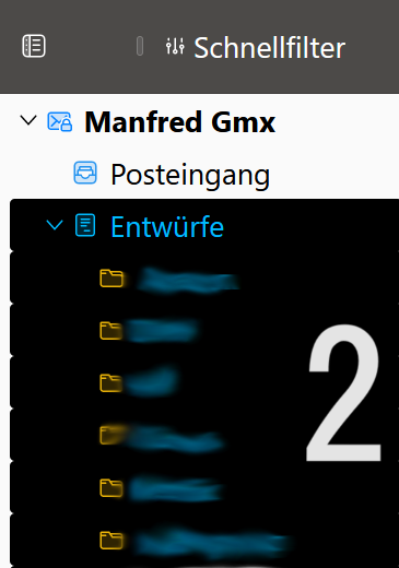 So weit, so gut., wenn ich jedoch den Ordner "Entwürfe" anwähle werden alle Unterordner ebenfalls mit ausgewählt. (siehe Bild 2)