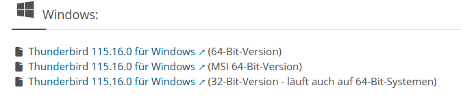 Jetzt habe ich aber den Vorschlag von ggbsde einmal durchgeführt und habe dies mit der Installationsdatei "Thunderbird 115.15.0 für Windows (64-Bit-Version)" gemacht.