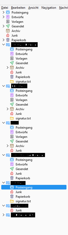 In den "Inbox"en sehe ich zum Teil die gleichen Mails (nicht immer alle, also z. B. 2015-2019 oder 2014-2021), in anderen "Keine Nachricht gefunden".