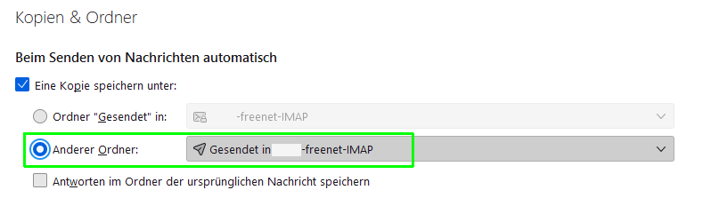 4. Natürlich kann ich hier tricksen und in TB das Setting :"Kopie ablegen in Gesendet" aber dann wird sie ja nicht auf dem Server gespeichert.
