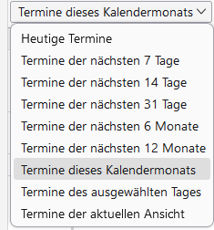 Nur kurz noch die Frage, ob man standardmäßig nach dem Start des Kalenders TB die Option "Alle Termine" als Voreinstellung wählen kann?