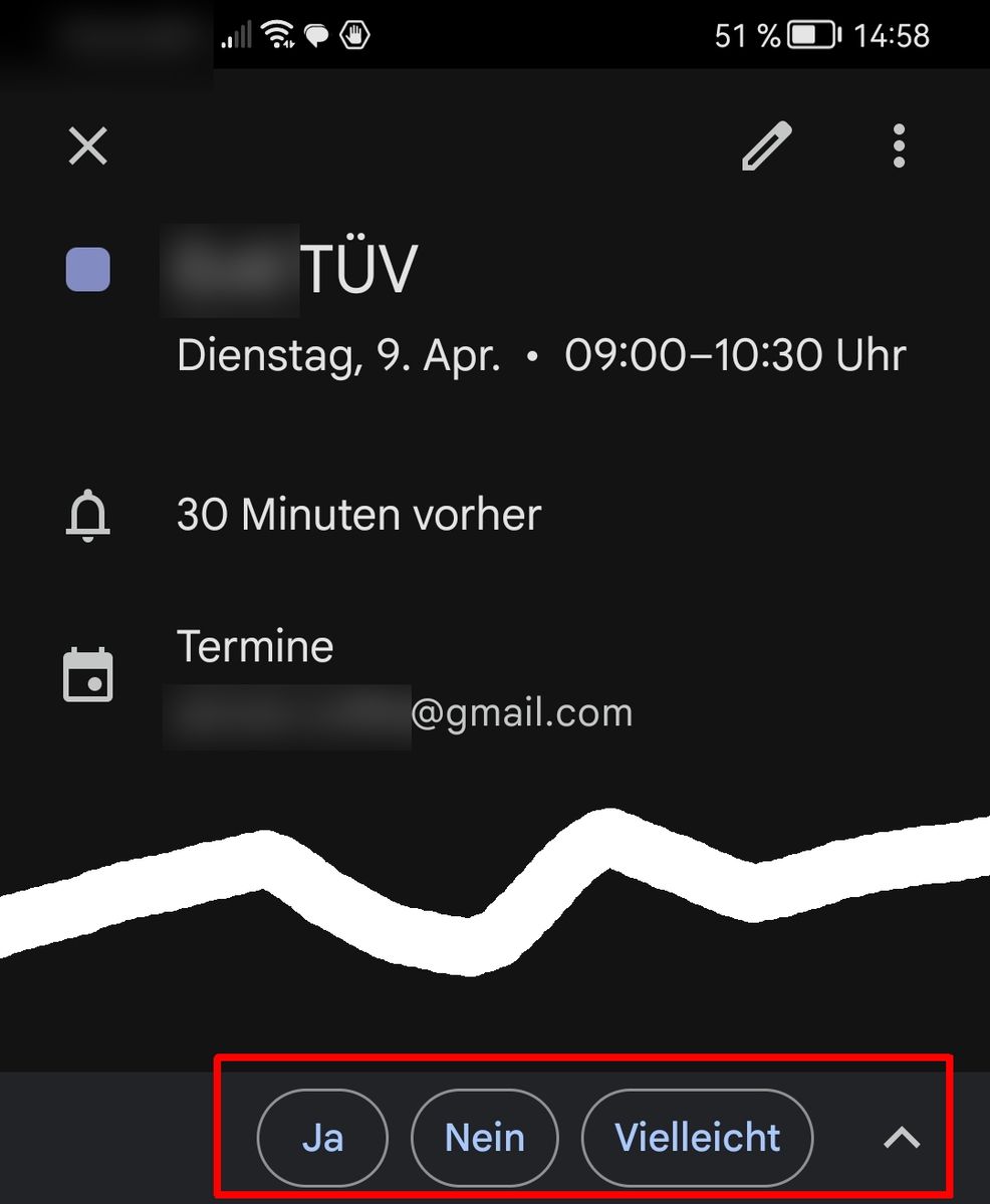 - alle mit Thunderbird in meinem google-Kalender erstellten Termin werden z. B. auf dem Handy mit den drei Buttons Ja/Nein/Vielleicht angezeigt.