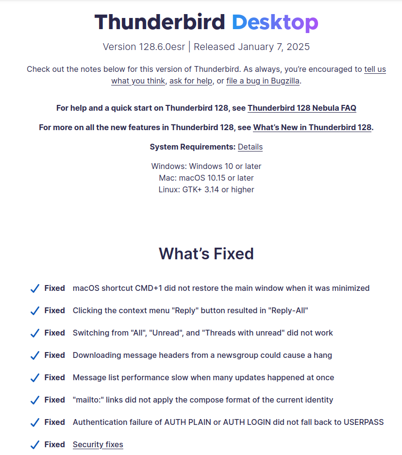 Bin ich der einzige der Thunderbird ESR 128.6.0esr (64-Bit) automatisch erhalten hat?