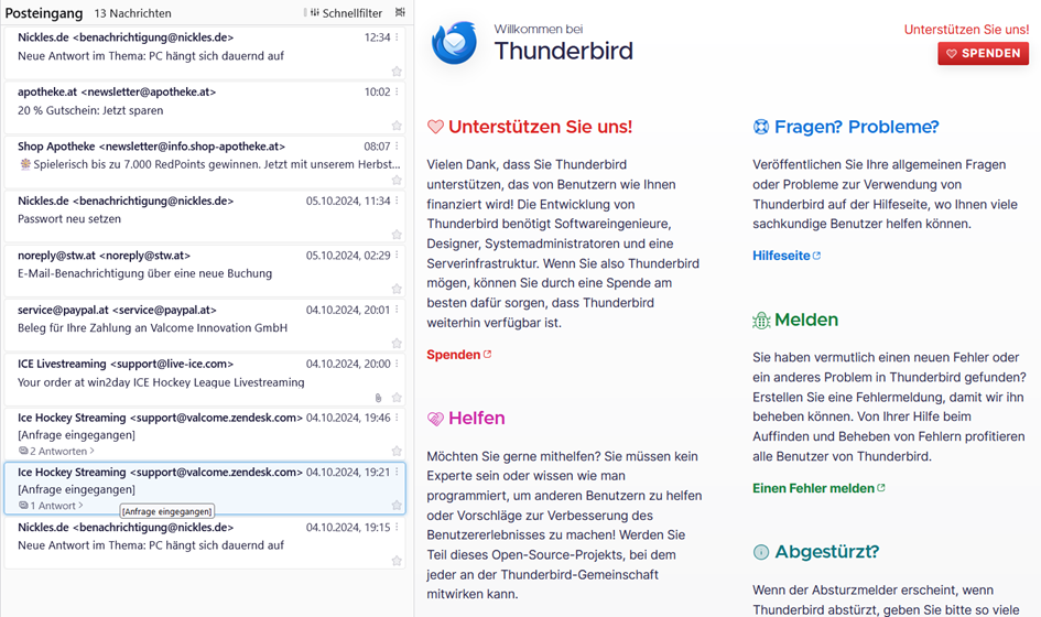 Guten Tag! Wie ihr seht bin ich neu hier und hoffe das ich mit meinen Problem hier richtig bin. Ich musste meine Programm W11 neu installieren. Dazu habe ich sämtliche E-Mails von Thunderbird gesichert (exportiert) und habe diese als Backup Datei auf einer externen HD gespeichert. Leider habe ich nicht gewusst das es nicht möglich ist eine Zip Datei die grösser ist als 2GB wieder hergestellt bzw. nach Installation von TB wieder eingespielt werden kann. Nun meine Frage: wie ist es möglich das ich meine E-Mails in die Neuinstallation von TB übertragen kann? Für eine ev. Hilfeleistung möchte ich mich schon im Voraus recht herzlich bedanken.