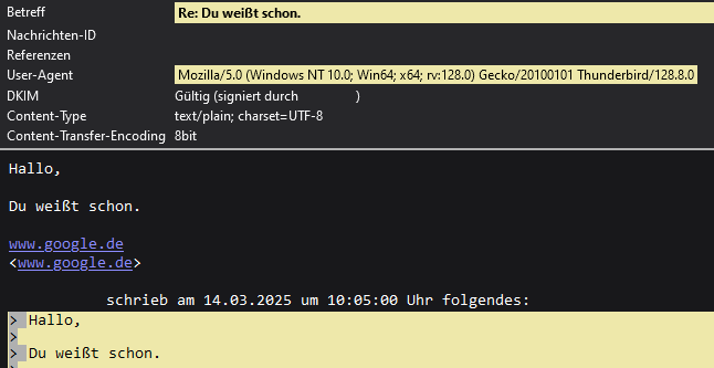 Es ist trozdem nervig, dass die Links nicht in der erstellten Mail als Link gekennzeichnet sind. So weiß ich nicht, ob Thunderbird das nun gecheckt hat oder nicht.