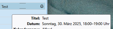 Ich habe bei den Terminen immer die falsche Uhrzeit, zB von 17-18 Uhr im Kalender. Wenn ich mit der Maus drüber fahre wird im Fenster 18-19 Uhr korrekt angezeigt!