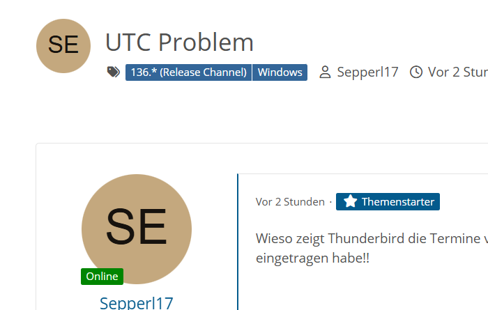Wieso zeigt Thunderbird die Termine von morgen plötzlich zur falschen Zeit an? Um 1 h vorher, als ich sie eingetragen habe!!