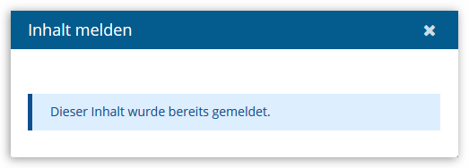 Falls ein Beitrag schon von einer anderen Person gemeldet wurde und diese Meldung noch nicht von den Moderatoren bearbeitet wurde, sehen Sie diesen Hinweis: