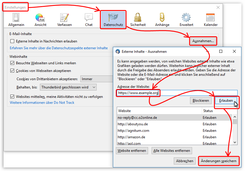 Externe Inhalte erlauben von http://www.example.org (Punkt 3