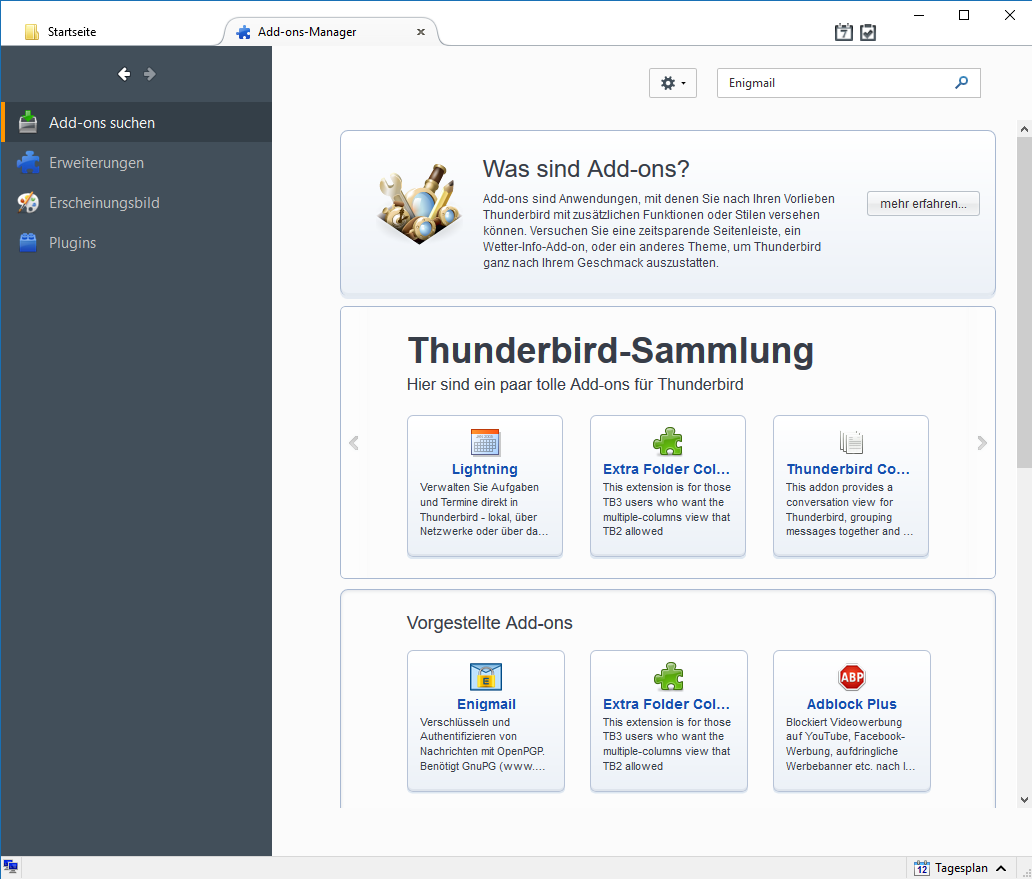 - Öffnen Sie bitte als Vorbereitung Thunderbird und dessen Add-ons-Manager.