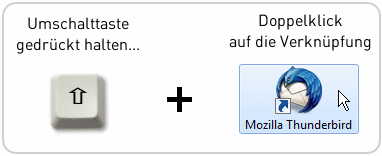 Wenn Thunderbird noch nicht gestartet wurde, gibt es folgende Möglichkeit, um in den Fehlerbehebungsmodus zu gelangen.