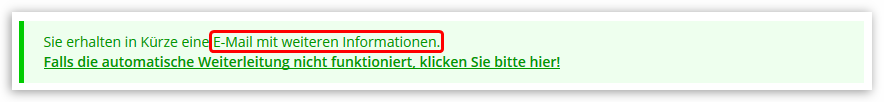 Wenn Ihre Eingaben okay waren, erscheint folgende grüne Hinweis-Zeile: