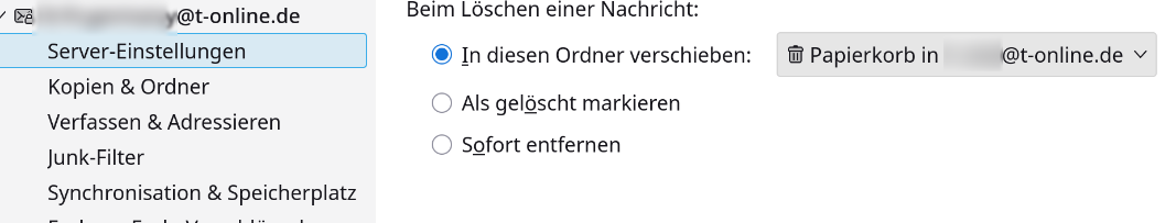 Hallo, möglicherweise hast du in den Kontoeinstellungen die dritte Option "Sofort entfernen" eingestellt (siehe Bildmitte unten).